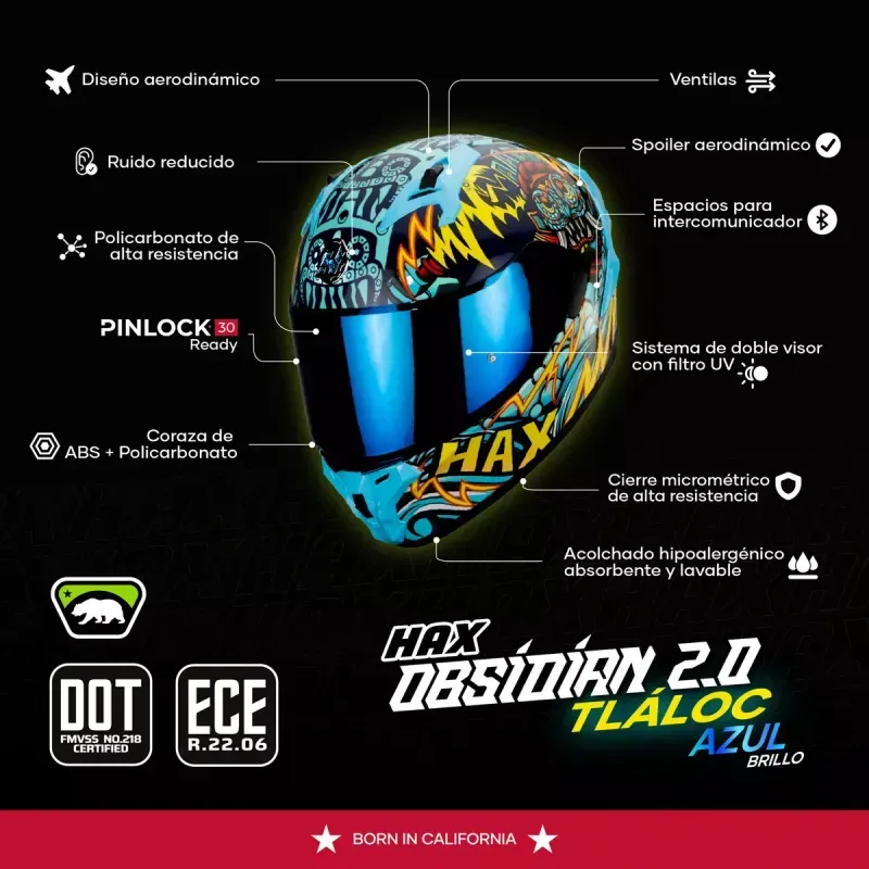 Casco Obsidian Tlaloc Negro /Azul L-HAX